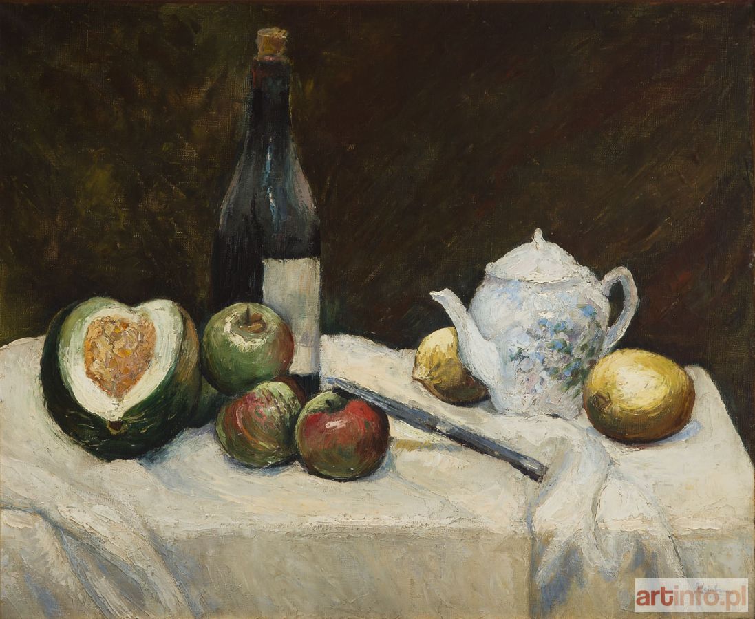 Prezentowana martwa natura powstała w Marsylii w 1918, o czym świadczy opis na odwrociu dzieła. Abraham Weinbaum czas Wielkiej Wojny spędził na południu Francji. Taki wybór był udziałem wielu artystów z kręgu École de Paris, gdyż - najczęściej jako poddani rosyjskiego cara lub austriackiego cesarza - nie zaciągali się do żadnej z armii lub też walczyli jako ochotnicy, a ci zwolnieni z wojska osiadali na Południu, z dala od frontu. Tak postąpił m.in. Mojżesz Kisling. W swoim obrazie autor nawiązał do tradycji martwej natury i odrzucił ekspresyjne eksperymenty Szkoły Paryskiej na rzecz troski o solidną konstrukcję i wykończenie pracy.
