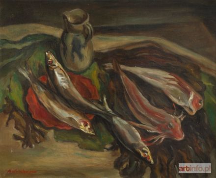 Prezentowana praca to jedna z najpiękniejszych martwych natur jakie wyszły spod pędzla Abrama Weinbauma. Choć jest to tylko tzw. "martwa", uderza zdolność malarza do wytworzenia specyficznej atmosfery - jakby przedstawione zwierzęta miały zdolność wyrażenia psychicznego stanu człowieka. Obraz malowany jest pewnymi pociągnięciami pędzla i rozegrany kolorystycznie na zestawieniu głębokich czerwieni z zieleniami. Abram Weinbaum pochodził z rodziny przemysłowca tekstylnego i dzieciństwo spędził w Łodzi. Studia malarskie rozpoczął w Odessie, ale szybko przeniósł się na Akademię Sztuk Pięknych w Krakowie, gdzie studiował pod kierunkiem Józefa Pankiewicza. Jako uczeń mistrza w naturalny sposób został nakierowany na wyjazd do stolicy ówczesnego świata artystycznego - Paryża. Zrealizował ten plan, skończywszy studia, w 1910 roku. W Krakowie zetknął się jeszcze z lewicowymi żydowskimi organizacjami, z którymi sympatyzował przez resztę życia. Weinbaum opuścił kraj jednak często wracał do Łodzi. We Francji założył rodzinę. W czasie okupacji przeprowadził się do Marsylii. W styczniu 1943 został aresztowany. Zginął w obozie koncentracyjnym w Sobiborze.