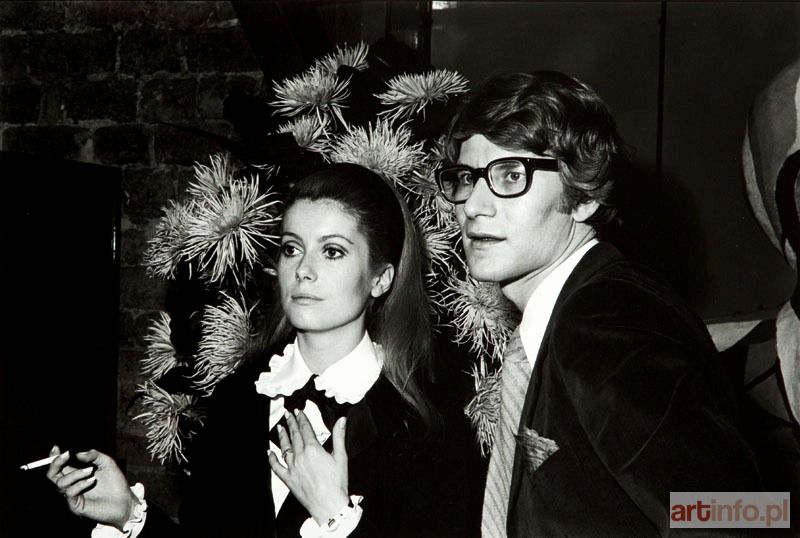 lifetime print, 8/30 fotografia czarno-biała, srebrowa/papier barytowy, 40 x 60,5 cm (arkusz) sygnowana p.d. sucha pieczęć autorska: `Alain Nogues` na odwrociu: `Paris 28 septembre 1966 Yves Saint Lauent et Catherine Deneuve, rue de tournon á Saint Germain des Pres, No 8/30 + 2 EA`, podpis: `Alain Nouges`, pieczęć: `Galerie Grace Radziwill`