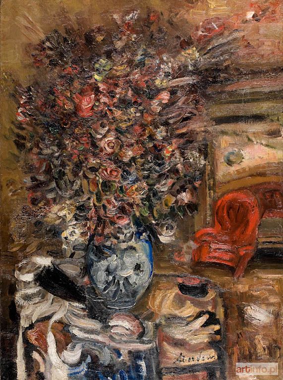Artysta od 1923 roku mieszkał w Paryżu, gdzie powstała większość jego dzieł. Od połowy lat 20. tworzył ekspresyjne kompozycje utrzymane w soczystych barwach. Przedstawiał sceny rodzajowe we wnętrzu, martwe natury, kompozycje inspirowane mitologią. Oferowany obraz pochodzi z końca lat 20. i przejawia się w nim dobitnie dekoracyjny zmysł artysty jak też znakomite wyczucie koloru.