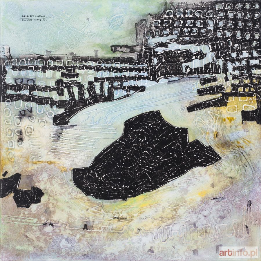 technika mieszana, płótno, 80.00 x 80.00 cm sygn. l.g.: ANDRZEJ ŻUREK POZNAŃ 2014 R., opisany na odwrocie: ANDRZEJ ŻUREK POZNAŃ 2014 R NR: 5 OBRAZ Cykl: "PRZESTRZENIE"=>"CZASOPRZESTRZENIE"/->//transformatory"