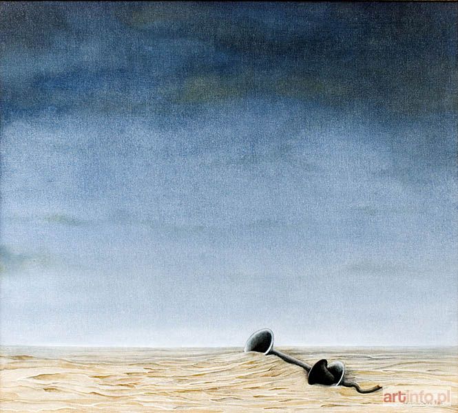 W surrealistycznym pejzażu z przysypaną piaskiem pustyni słuchawką telefonu zawarte są towarzyszące stanowi oczekiwania uczucia: tęsknoty, osamotnienia, odizolowania od całego świata. W kompozycji tej, z dwiema tylko ogromnymi płaszczyznami nieba i piasku, wymagającej ogromnej umiejętności subtelnego zróżnicowania powierzchni, widać doskonały warsztat artystki.
