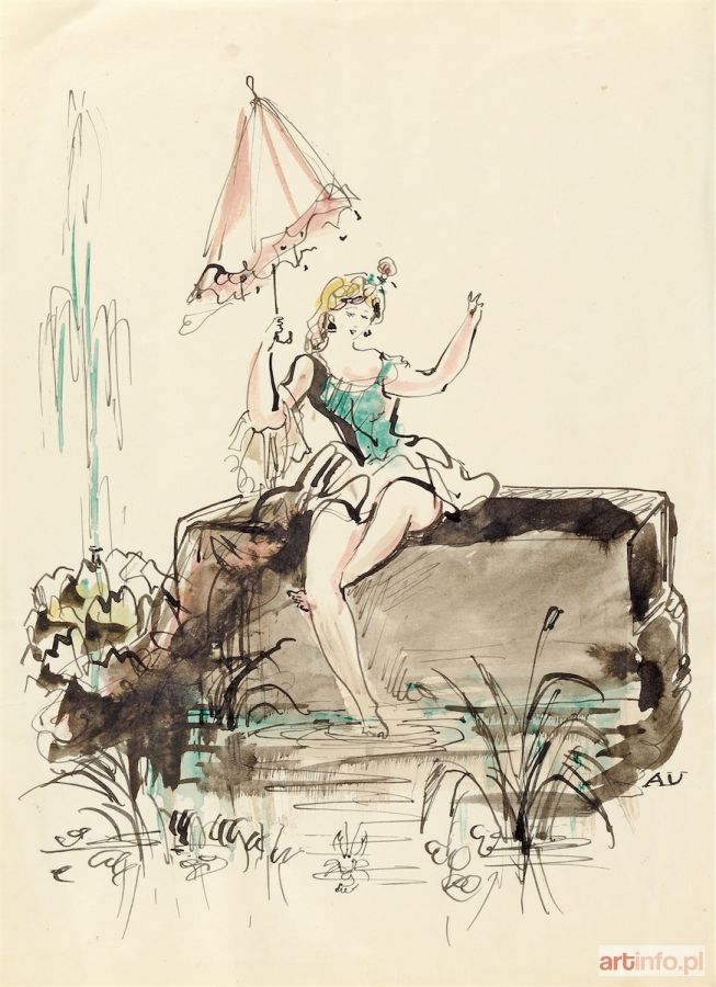 akwarela, tusz, 30,5 x 21,5 cm, sygnowana po prawej monogramem "AU"