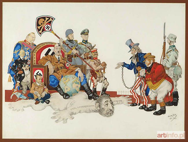 gwasz, tusz, akwarela, ołówek na podkładzie litograficznym, papier naklejony na osnowę płócienną, 56 x 74,5 cm sygnowany u dołu po prawej "Artur Szyk N. Y. 1940"
