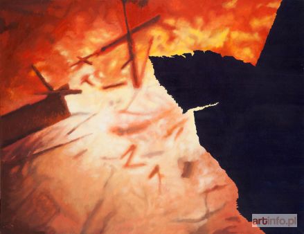 opisany na odwrocie: Dorota Kozieradzka "Fire", 100x130 cm, tempera żółtkowa na płótnie 2013 r