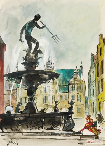 Fontanna Neptuna na Długim Targu w Gdańsku - ilustracja