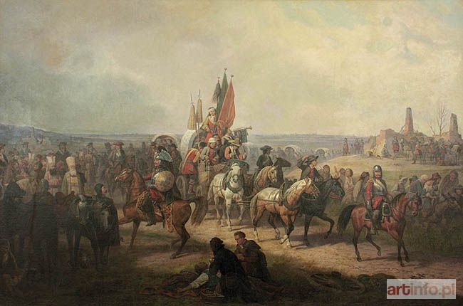por.: K. Sroczyńska, Inaczej o Januarym Suchodolskim, [w:] "Rocznik Muzeum Narodowego w Warszawie", t. XXVII, Warszawa 1983, s. 178, poz. kat. 85 (293), s. 245, il. 47 (fragment). "Do tematu wiktorii wiedeńskiej powracał January Suchodolski przez całe życie, malując różne jej fragmenty i epizody, a więc uroczystą chwilę wjazdu króla Jana do oswobodzonej stolicy cesarskiej, pełne ruchu i popłochu sceny ucieczki Kara Mustafy, wzięcie sztandaru Wielkiego Wezyra, ujęcie jego konia, odwroty spod Wiednia, przeglądy jeńców i inne (...)" (K. Sroczyńska, op. cit., s. 178). Jak się wydaje w namalowanej u schyłku życia monumentalnej kompozycji Suchodolski pragnął w większym stopniu oddać symboliczny obraz apoteozy triumfu Chrześcijaństwa nad Światem Islamu, wpisując się tym samym w tradycję nawiązującą do dzieł w rodzaju "Bitwa pod Lepanto". W dziele Suchodolskiego odnajdujemy nadto cały repertuar postaci, jeźdźców, elementów sztafażu i tła znanych z jego całej twórczości.