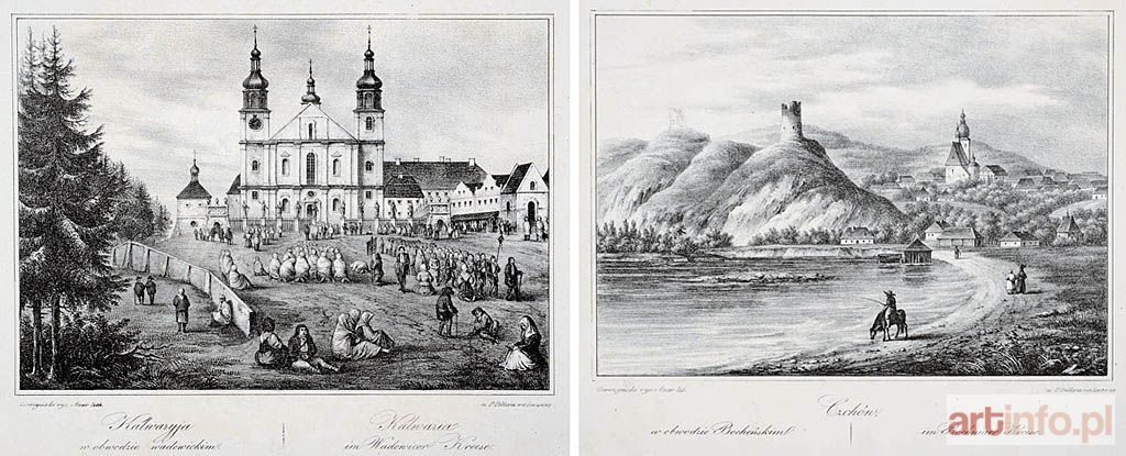 GALICYJA w obrazach, czyli Galeryja litografowanych widoków, okolic i najznamienitszych zabytków w Galicyji, Lwów 1837-1838, u [w Litografii] Piotra Pillera. Według rysunków własnych, a także Antoniego Langego i Adama Garczyńskiego, litografował Karol AUER (1818 - zm. po 1858).