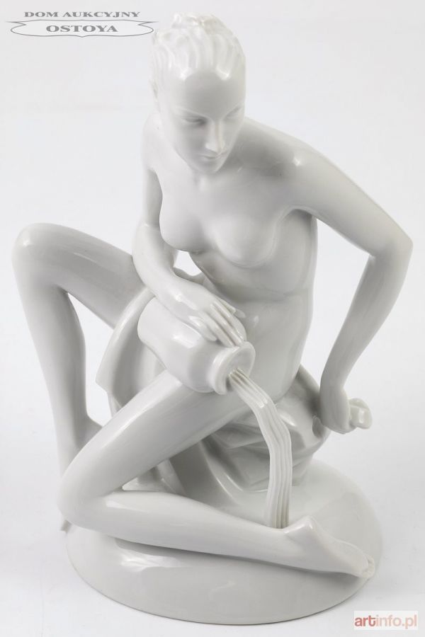 Model Gerhard Schliepstein Figura, porcelana, wys. 23 cm Sygnowana wyciskiem: G. Schliepstein / 828; zielenią chromu druk podszkliwny: korona / dwie róże / Rosenthal / Germany / . V .