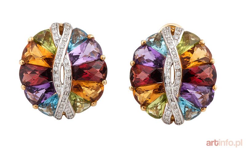 Kolczyki z kolorowymi kamieniami szlachetnymi i brylantami, współczesne