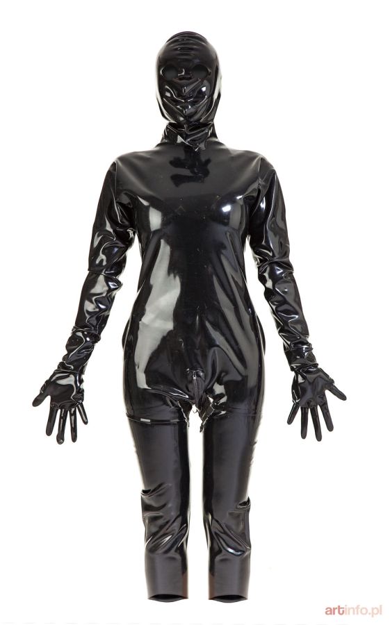 lateks,kostium składa się z kombinezonu (dł. 128 cm) maski i rękawiczek