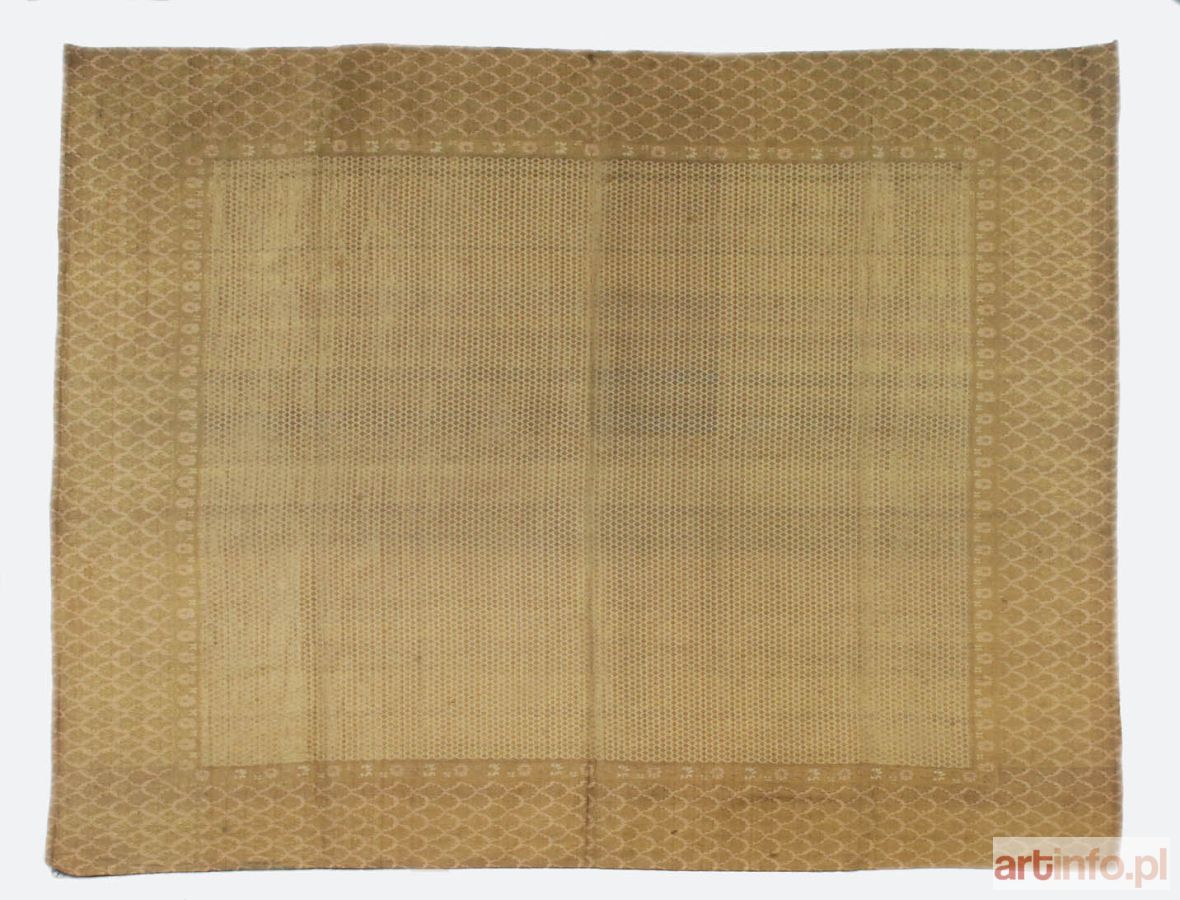 Środek z motywem drobnej łuski karpiej; szeroka bordiura z dużym wzorem łuski karpiej, przy czym każda łuska ma kształt palmetki. Koloryt miodowo-złoty. W jednym z naroży od spodu wszyta krajka z wpisanym w owal herbem Pilawa pod hrabiowską koroną; nad górną krawędzią owalu łukiem napis: „BUCZACZ”. Poniżej nieczytelne ręczne napisy.