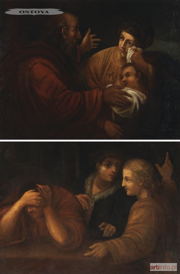 PARA OBRAZÓW, k. XVIII w. ABRAHAM WYPĘDZA HAGAR Z IZMAELEM, JÓZEF TŁUMACZY SNY DWORZAN FARAONA Olej, płótno dublowane, 88 x 104 cm Obrazy posiadają ekspertyzę