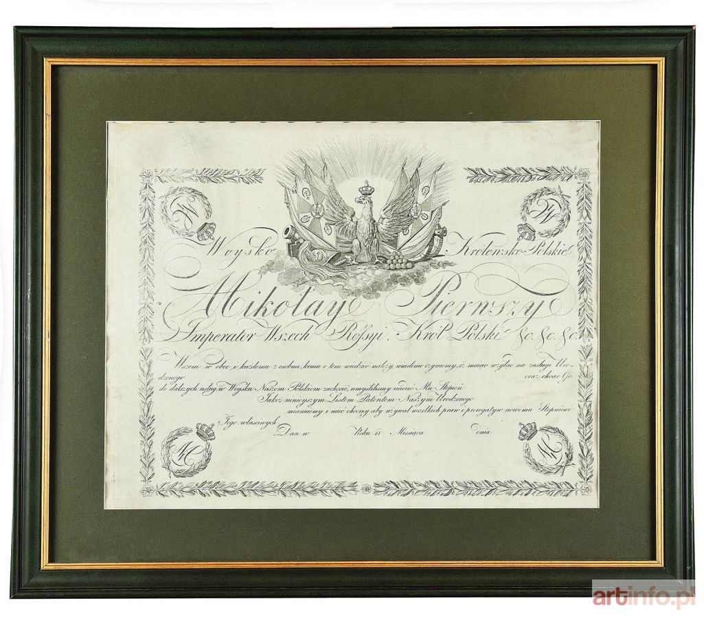 Patent oficerski (blankiet) z okresu Królestwa Polskiego