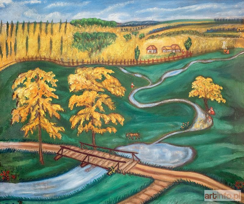 olej, płótno, 46 × 55 cm sygn. monogramem l. d.: ZS na odwrocie opis: Sophie de Schomberg/ Szymberska/Paysage polonais/-Wierzbiany- oraz fragment nalepki wystawowej