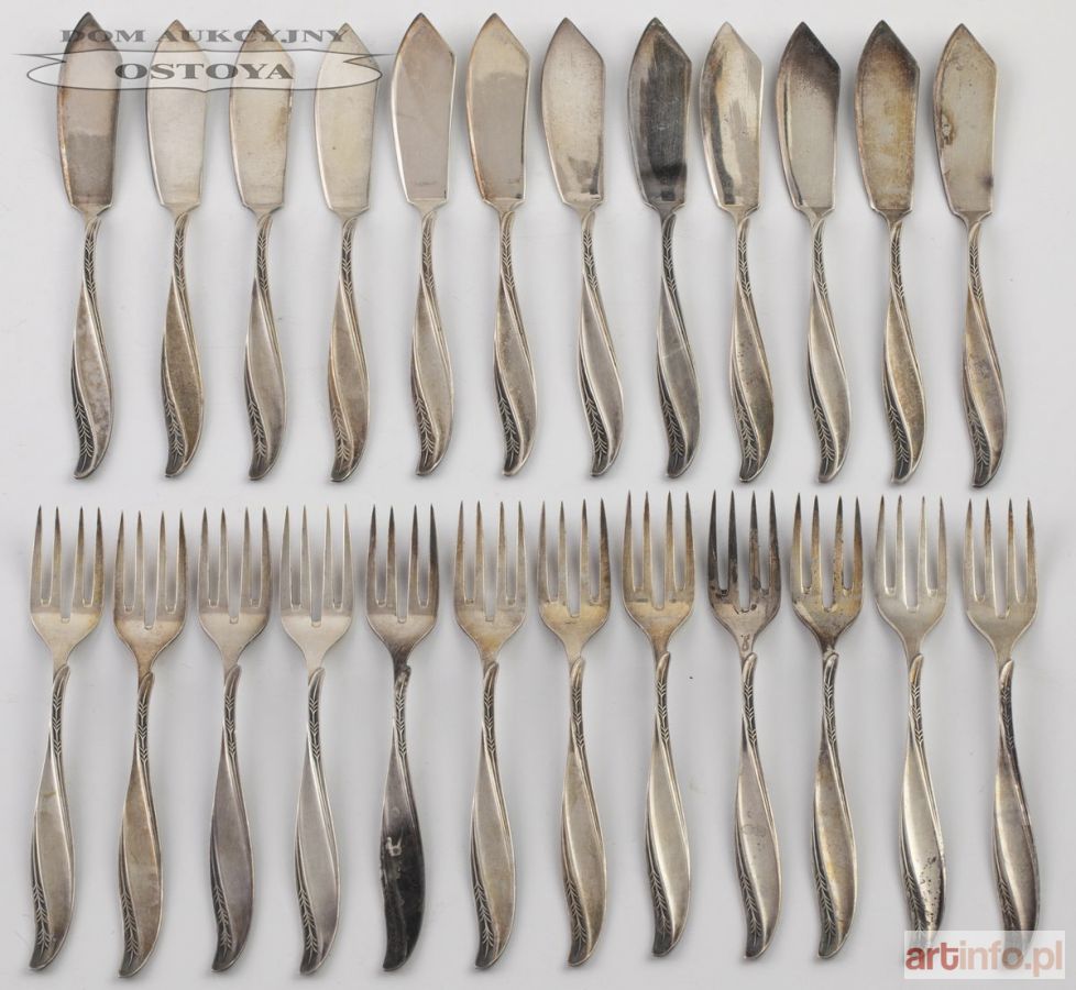 Srebro, próba 3, waga 1015 g, dł. 20,5 i 18 cm, razem 24 szt.