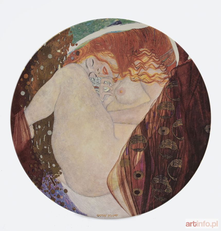 według Gustawa Klimta porcelana; średn. 40,5 cm; sygnowana na spodzie: owal z napisem w otoku MMI/ GOEBEL / TRADEMARK LICENSED BY MBIE GERMANY oraz wewnątrz ARTISTS ORBIS / Goebel poniżej GVSTAV KLIMT / Danae / Limited Edition 0574/ 1.000.