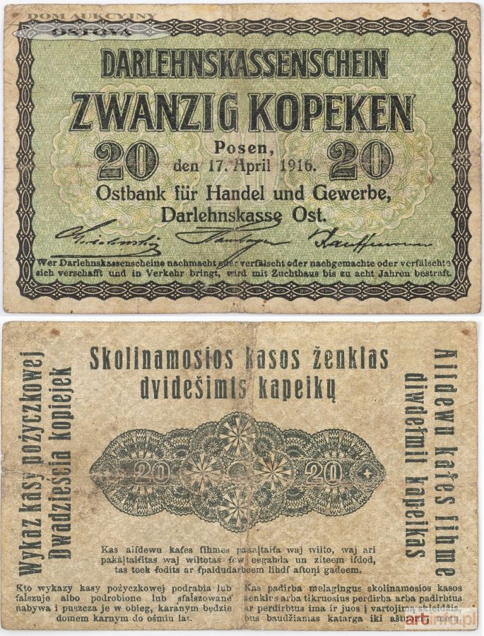 WYKAZ KASY POŻYCZKOWEJ, 20 kopiejek, Poznań, 17.04.1916
