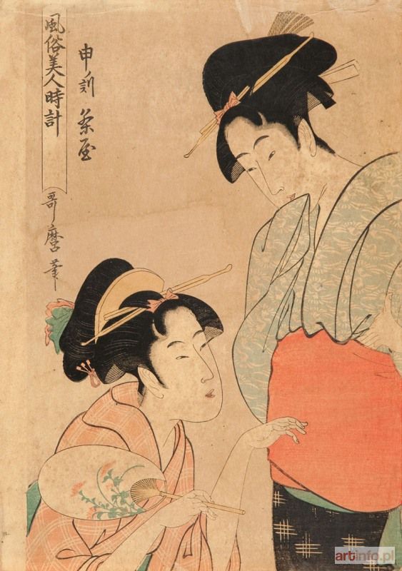drzeworyt barwny nishiki-e, format oban tate-e, 38,6 x 27,5 cm sygnowany: `Utamaro hitsu` rycina z cyklu: Fuzoku bijin tokei (Godziny obyczajów piękności), ok. 1800 r., reprint prawdopodobnie z okresu Meiji POCHODZENIE: przedwojenna kolekcja Maksymiliana Goldsteina