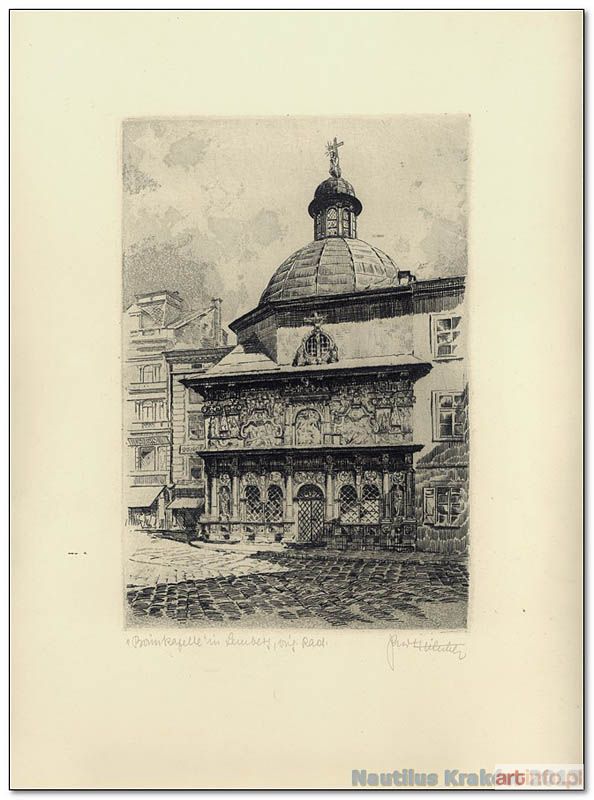 Akwaforta; wym. komp.: 254 x 170 mm; sygn. oł. p.d.: Kurt Hilscher, l.d. opis i technika w jęz. niemieckim. Lit.: J. Hilscher, "Kurt Hilscher. Werbegrafik und Verlagsarbeiten. 1925-1975", Paris 2008. Rzadka praca, nienotowana w katalogu prac artysty.