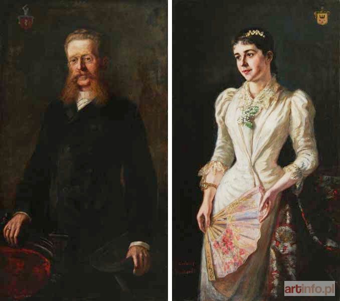 Portret Marii Kączkowskiej-Kossobudzkiej dd. Kamińskiej herbu Sulima (ok.1895) sygn. l.d., olej, płótno 132.5x74. Portret Rafała Kączkowskiego herbu Prus I (ok.1895) sygn. p.d. olej, płótno, 132.5x74.5