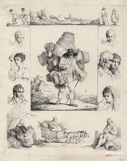 akwaforta; wym.: 298 x 228 mm; sygn. pł. (l.d. pod centralną postacią): M.Płoński f.1805. Najlepsza praca artysty, jednocześnie wybitne dzieło polskiej grafiki XIX w. Lit.: W. Tatarkiewicz, "Michał Płoński", Warszawa 1926, il. na okładce, także tablica; E. Rastawiecki, "Słownik rytowników polskich", Poznań 1886; J. Jakimowicz, "Pięć wieków grafiki polskiej", Warszawa 1997.