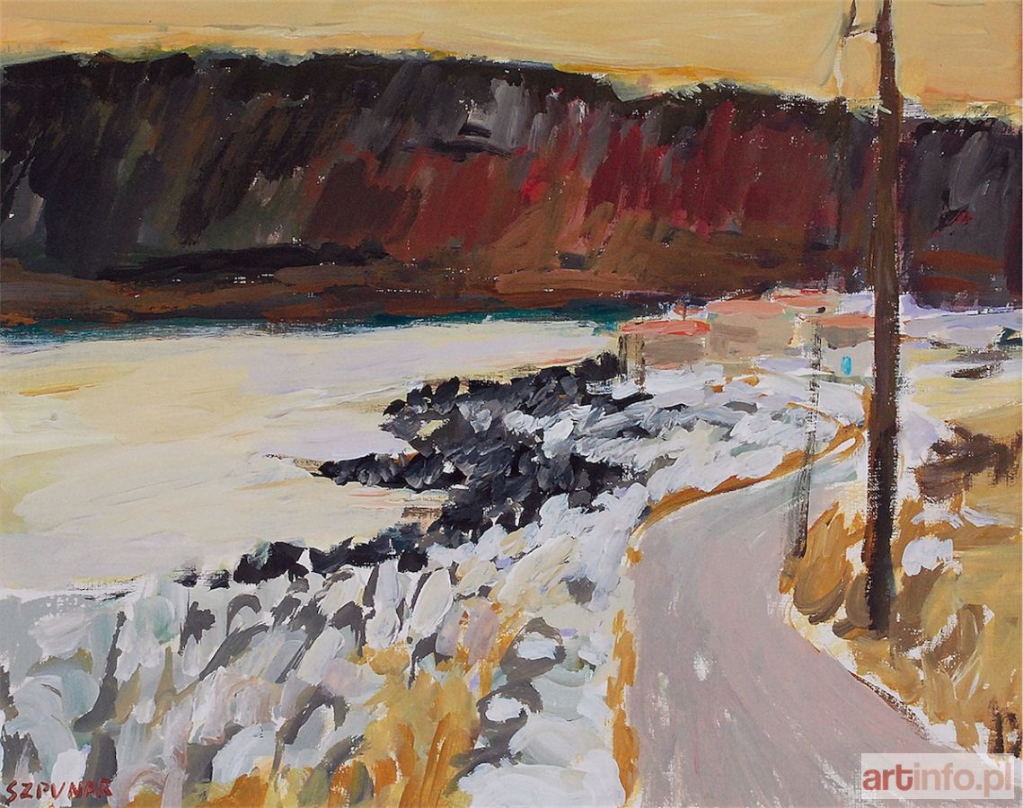 akryl, papier gruntowany, 33 x 41 cm; sygn. l. d.: SZPUNAR Na odwrocie opis autorski: RENATA SZPUNAR-KUBCZYK / "BIAŁA DROGA DO GEROLIMENES" z cyklu "Grecja" / z. c. "GRECJA" AKRYL, PAP. GRUNT. 33 x 41 cm / 2008 R.