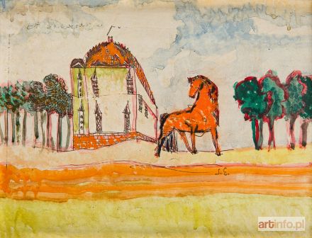 olej, tusz/tektura, 19,5 x 26 cm sygnowany wewnątrz kompozycji: 'S.E.' na odwrociu papierowa nalepka wystawowa: 'EXHIBITION | STANISŁAW ELESZKIEWICZ | 1900 - 1963 | Lipert Gallery | 147 Milton Street | Greenpoint Brooklyn, NY 11222 | May 10 - June 14, 1986' oraz napis ołówkiem: '26'