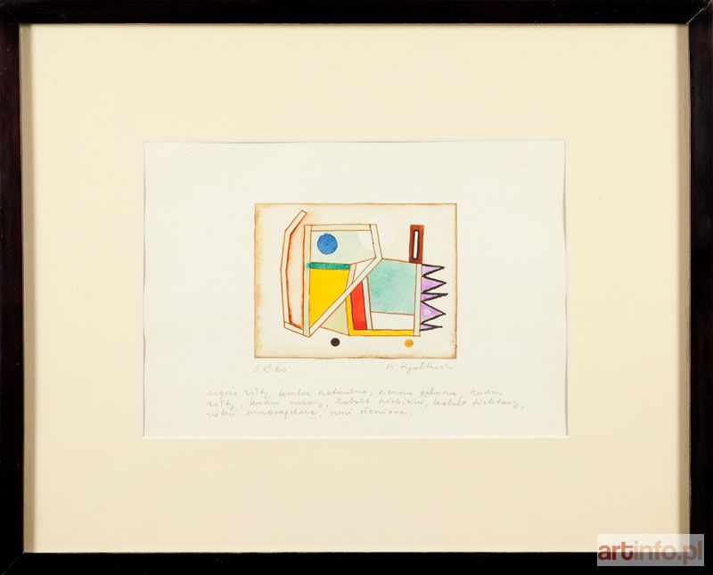 technika mieszana/papier, 21 x 31 cm (w świetle passe-partout) u dołu opisany: `3.VI.60 St. Fijałkowski | ugier żółty, umbra naturalna, sienna palona, kadm | żółty, kadm czerwony, kobalt niebieski, kobalt fioletowy, | zieleń szmaragdowa, czerń słoniowa`