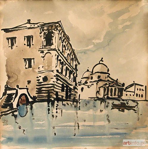 Oferowana akwarela, nieznana literaturze przedmiotu, należy - wbrew pierwszemu wrażeniu - do tej właśnie grupy syntez - kompilacji sugestywniejszych od rzeczywistości, choć wykorzystujących, potraktowane nader swobodnie i ogólnie, motywy realne (na przykład palladiański portyk San Giorgio Maggiore). Format arkusza papieru jest identyczny z użytym kilkakrotnie w tymże roku 1923 (por.: Stanisław Noakowski. Rysunki. Katalog, red. J. Zachwatowicz, oprac. M. Mrozińska przy współpracy E. Budzińskiej, Warszawa 1966, m. in. poz. 1801, 1805-7, 1810-11); podobne motywy (pałac i/lub kościół) znane są zaś co najmniej z kilku innych redakcji (ibidem, poz. 1845, 1847, 1876, 2128-9).
