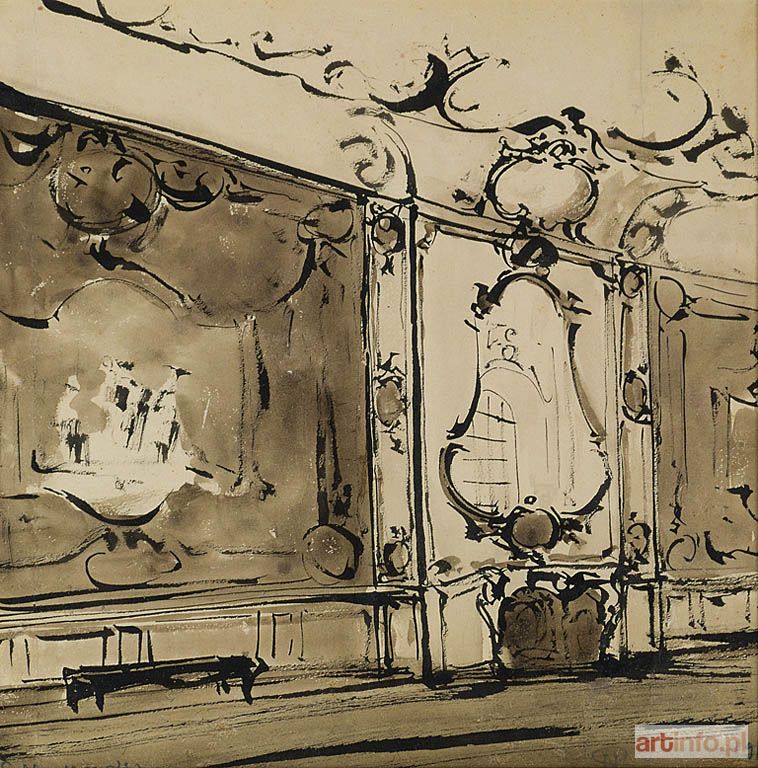 Akwarela, piórko, bristol; 48 x 24 cm świetle passe-partout Sygnowany l.d.: S. Noakowski, p.d.: monogram wiązany SN, obok data: 1917.