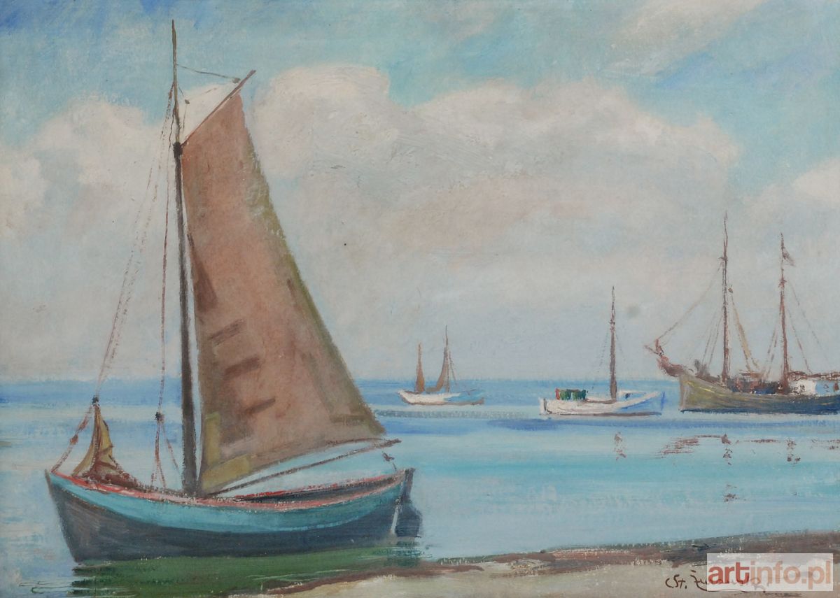 na odwrocie napis: Stanisław Żurawski / Kutry w Kuźnicach / 35 x 50 ol.