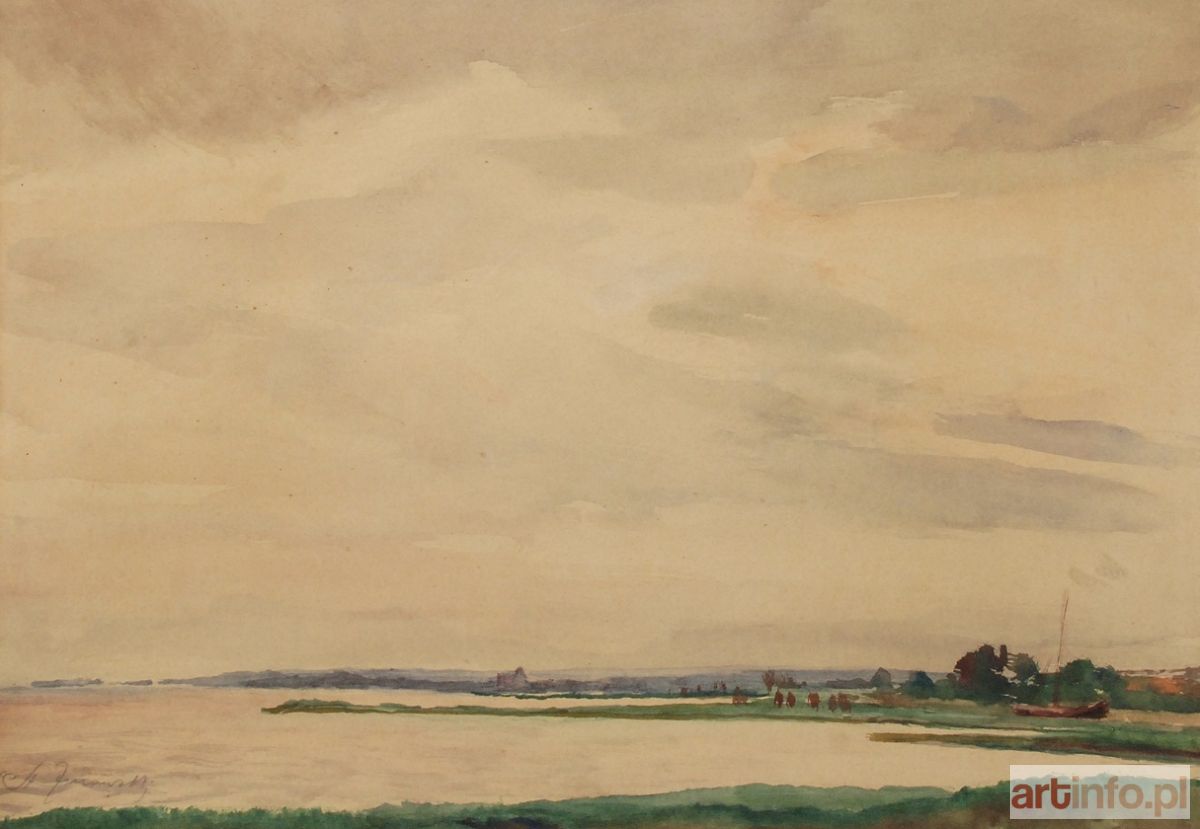 akwarela, papier naklejony na tekturę; 24,5 x 34,5 cm (w świetle passe-partout); sygn. l. d.: St Żurawski (ołówkiem); na odwrocie opis autorski ołówkiem: No 3 / A. Żurawski /Zatoka Pucka / Do Lublina /akw. / cena 100 zł oraz nalepka TPSP w Krakowie z numerem 75.