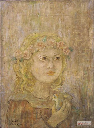 Tadeusz Makowski studiował malarstwo w krakowskiej Akademii Sztuk Pięknych w latach 1903-1908, równocześnie kontynuując filologię na Uniwersytecie Jagiellońskim. W 1908 roku wyjechał do Monachium, a potem do Paryża i tu osiadł na stałe. Około 1910 roku związał się z kręgiem malarzy kubistów i to wywarło zasadniczy wpływ na jego twórczość. W latach dwudziestych podróżował po Francji (Bretania, Owernia). Brał czynny udział w życiu paryskiej Polonii. Był prezesem Towarzystwa Artystów Polskich w Paryżu. Uprawiał malarstwo, grafikę, rysunek. W latach 1923-1927 i w 1932 roku wystawiał z grupą malarzy, do której należeli Gromaire, Dubreuil, Pascin i Krohg. Stał się jednym z najsłynniejszych przedstawicieli środowiska polskich malarzy działających w Paryżu. Zwłaszcza zapisał się na stałe w historii sztuki swymi scenkami, w których biorą udział dzieci ukazane w lirycznym świecie prostych form. "Dziewczynka z ptaszkiem" należy do typowych studiów portretowych dziewczynek. (...) W typie ujęcia najbliższa wydaje się (...) nie publikowana dotąd ŐDziewczynka z lalkąŐ (własność MNW, nr MPW 2719)". (cytat z ekspertyzy)