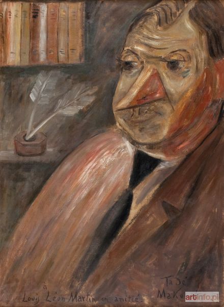 POCHODZENIE: zakup z kolekcji rodziny Solange Leon Martin, Paryż 2008 LITERATURA: Władysława Jaworska, Tadeusz Makowski - życie i twórczość, IS PAN 1964, repr. nr 144, s. 255, kat. poz. nr 519 Tadeusz Makowski jest jednym z najwybitniejszych artstów polskich 1 połowy XX w. Był malarzem, grafikiem i rysownikiem. W latach 1903- 08 uczył się w Akademii krakowskiej u J. Unierzyskiego, J. Mehoffera i J. Stanisławskiego; jednocześnie studiował filologię na Uniwersytecie Jagiellońskiem. W roku 1908, przez Monachium, wyjechał do Paryża, gdzie zamieszkał na stałe. Stamtąd wyjeżdżał na letnie sezony do Bretanii, Owerni oraz na południe Francji. Odbył też podróż artystyczną do Holandii i Belgii (1921). W Paryżu przyjaźnił się z wieloma znakomitymi malarzami, pisarzami oraz marszandami. Utrzymywał żywe kontakty z artystami polskimi przebywającymi we Francji i był prezesem paryskiego "Towarzystwa Artystów Polskich". Swoje prace wystawiał w kraju - w Krakowie i Warszawie (od 1907 r.) i Lwowie (1910 r.) oraz za granicą: w Paryżu, Barcelonie, Wiedniu, Budapeszcie i Amsterdamie. Malował kompozycje figuralne, pejzaże, martwe natury i portrety, zwłaszcza dzieci. Eksperymentując z malarstwem kubistycznym wypracował swój indywidualny styl. Formą, kolorem i światłem, a także pewną deformacją budował pełne liryzmu choć czasami nie pozbawione pewnej ironii czy drwiny kompozycje malarskie.