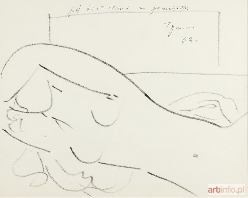 flamaster/papier, 24 x 30 cm (w świetle passe - partout) u góry dedykowany, sygnowany i datowany: `prof. Piotrowiczowi na pamiątkę | Tymon| 62 r`