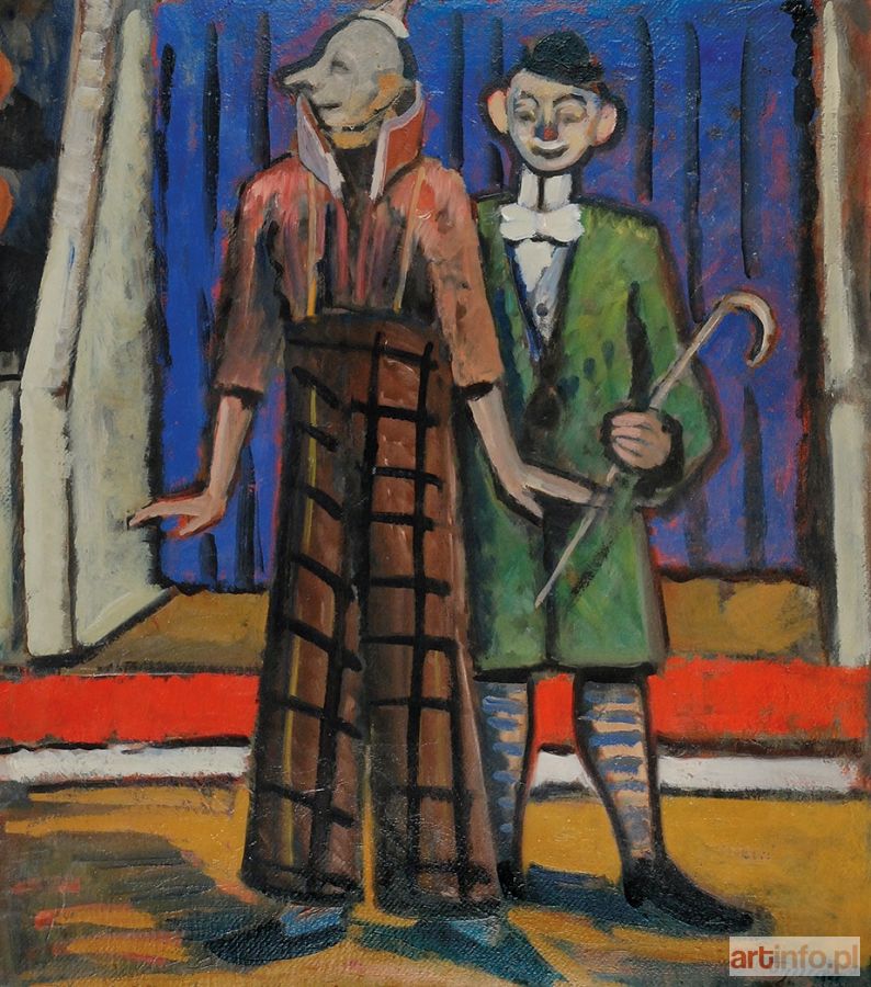 olej, tektura; 68,5 x 60 cm; sygn. p. d.: Tymon; na górnej listwie oprawy autorska nalepka z napisem: Tymon Niesiołowski / "Cyrkowcy" / olej / 70 x 60.