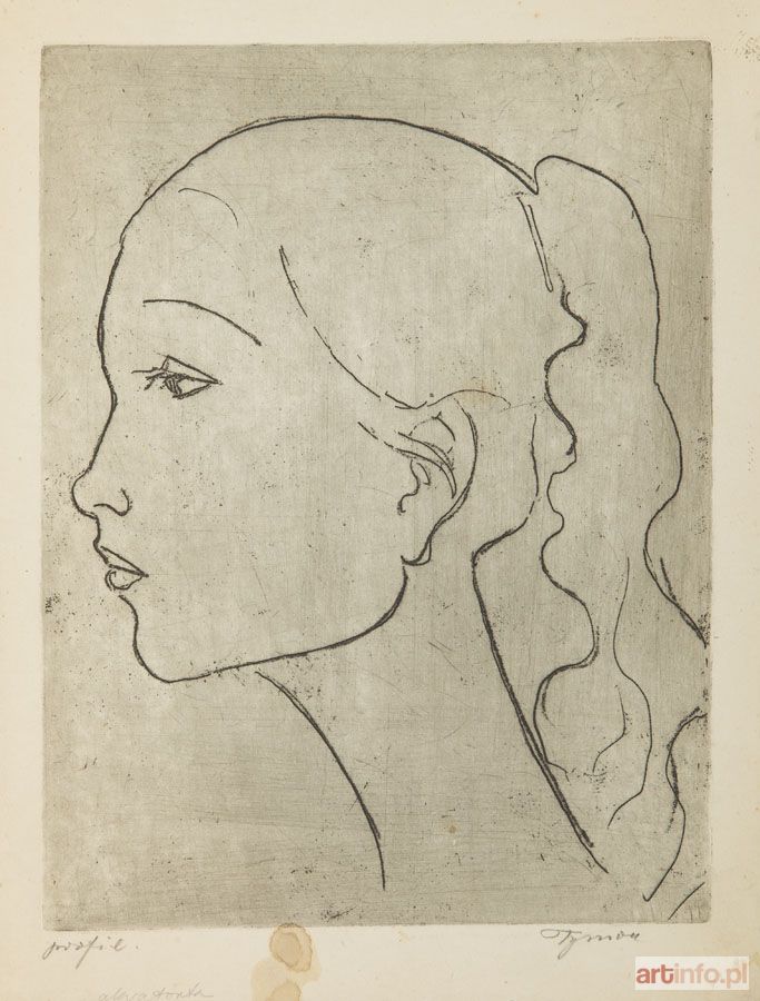 akwaforta/papier, 28 x 21 cm (zadruk) sygnowany ołówkiem p.d.:'Tymon', opisany l.d.: 'profil | akwaforta' sygnowany i opisany na odwrociu: 'Tymon | Niesiołowski | akwaforta'