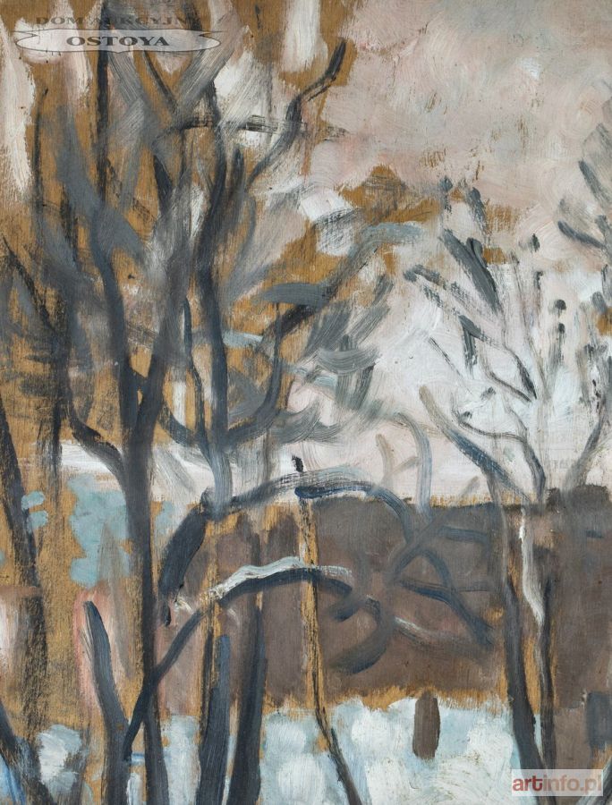 Olej, sklejka; 36 x 29 cm Na odwrocie dedykacja autorska: KOCHANEMU PANU JANOWI BOROWSKIEMU/ NA PAMIĄTKĘ Z DNI SMUTNYCH./ - TYMON/ WILNO 1 II 1940 r.