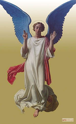 olej, płótno; 192 x 120 cm; sygnowany i datowany wzdłuż brzegu szaty Anioła: PARIS NORBLIN PINXI(...) ANNO MDCCCL na odwrocie wypisany numer inwentarza muzealnego: DMNKCz 1762; na papierowej nalepce: 5236