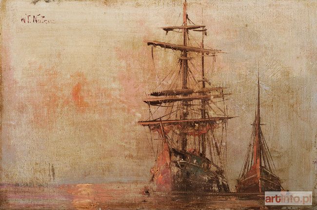 olej na płótnie naklejonym na fazowaną deskę mahoniową, 20 x 30 cm, sygnowany l.g. "Wł. Nałęcz"