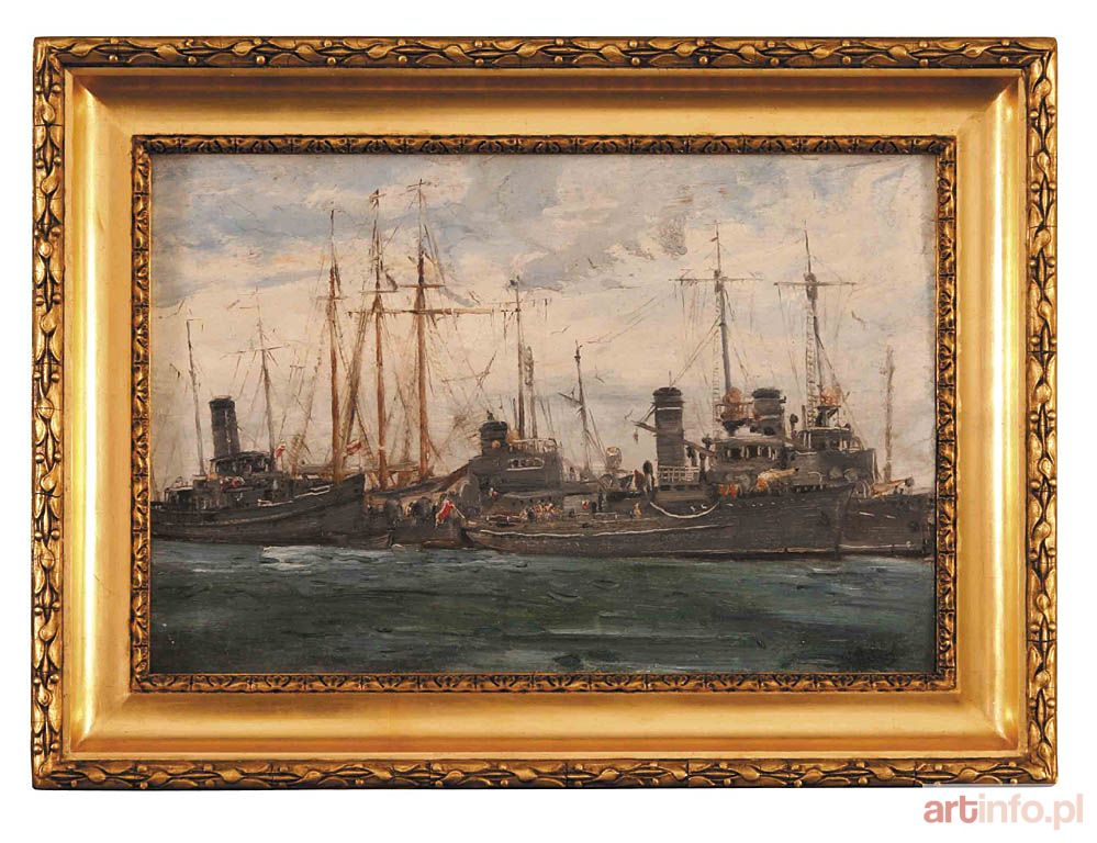 W latach 1885 - 93 studiował w akademii w Petersburgu u P. Czistiakowa i W. Jakobiego, specjalizując się w malarstwie pejzażowym. Następnie odbył podróże do Belgii, Szwecji, Norwegii, Anglii. Mieszkał w Paryżu, a od 1906 r. w Warszawie. W roku 1909 popłynął statkiem wzdłuż Wisły do Gdańska, by poznać wybrzeże Bałtyku. Od tego momentu poświecił swą twórczość oraz działalność społeczną szerzeniu wiedzy o polskim morzu i rejonie Pomorza. W 1920 r. zakupił posiadłość koło latarni morskiej w Rozewiu, gdzie wybudował willę i pracownię na plaży nadmorskiej. Był przede wszystkim pejzażystą. Pociągały go szczególnie widoki gór i morza. Prace artysty cieszyły się dużym uznaniem zarówno wśród krytyki jak i publiczności. Prezentowany obraz przedstawia prawdopodobnie polskie pancerniki tzw. `ptaki`.