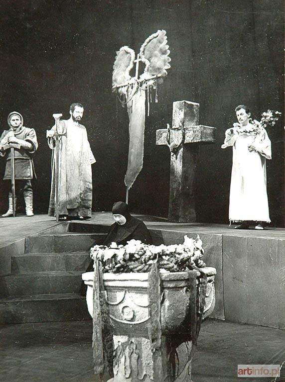 wg Stanisława Wyspiańskiego, fotografia czarno-biała, brom, 23,1 x 17,2 cm; na odwrocie pieczęć autorska Zbigniewa Łagockiego oraz pieczęć z Państwowego Teatru Ludowego w Nowej Hucie