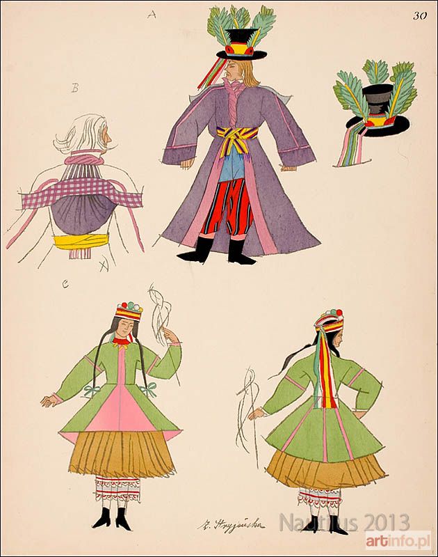 sz malowany szablonem (pochoir); wym.: 499 x 393 mm; sygn. p d.: Z. Stryjeńska; na odwrocie napis: Copyright by C. Szwedzicki; grafika z teki "Polish peasants costumes", Nicea 1939, pl. nr 30. Lit.: "Zofia Stryjeńska. Katalog wystawy Muzeum Narodowego w Krakowie", Kraków 2008, s. 359.