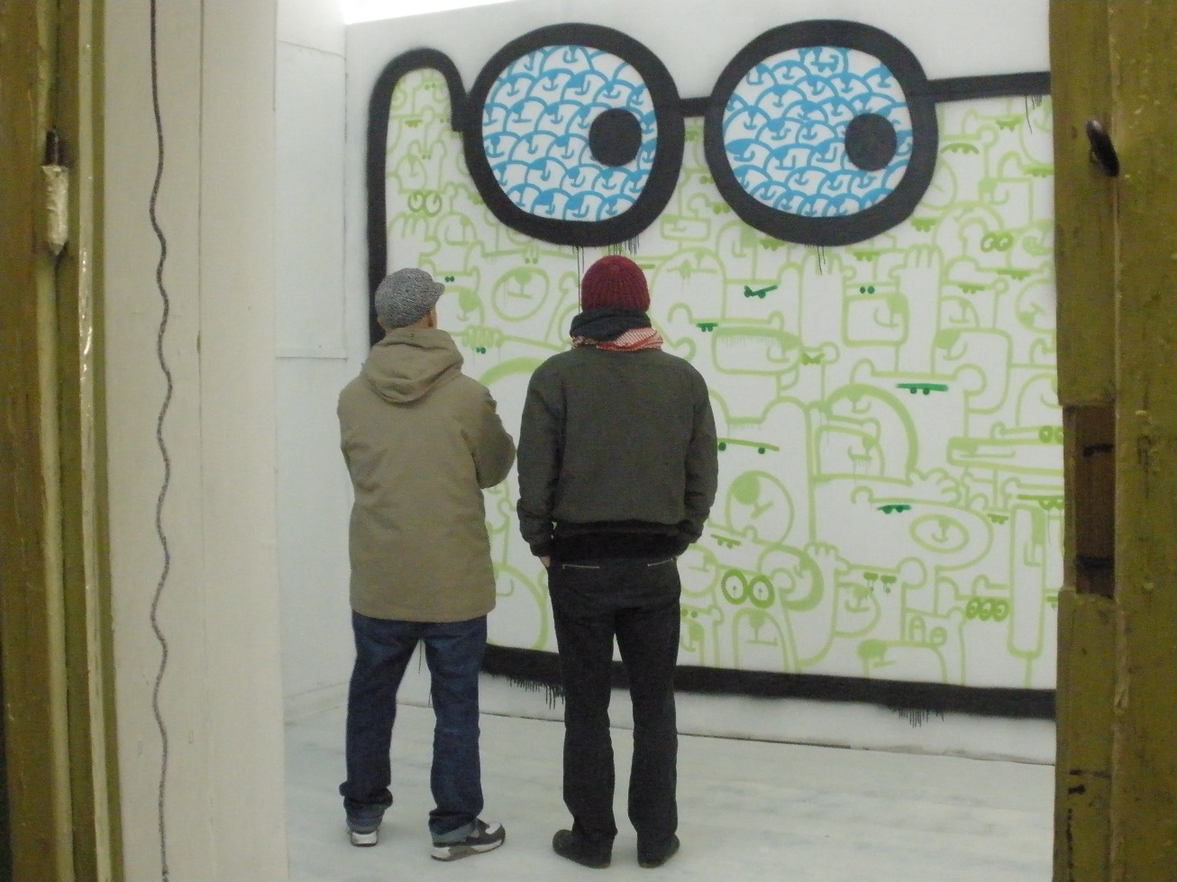 Jednak streetart bardzo dobrze prezentuje się w galerii. Przekonać można się o tym właśnie w [V]iurze. Projekty Esa były wykonywane dotychczas na ulicach w Zielonej Górze. Tym razem zostały zamknięte w galerii – ekspozycja składa się z wielkiego miśka namalowanego w sposób „tradycyjny” – sprayem na ścianie; a także małych misiów – jeszcze bardziej tradycyjnych , gdyż namalowanych na płótnie.