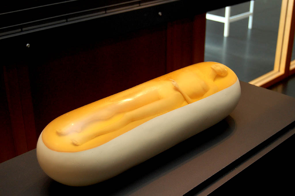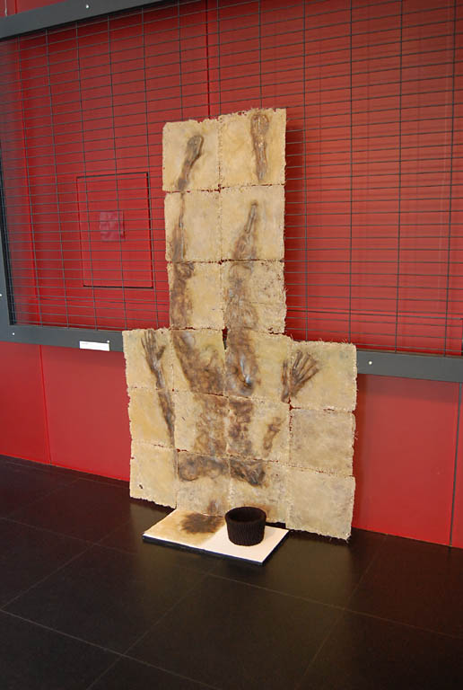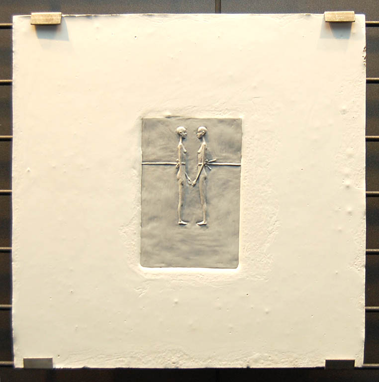 Wystawę otwierają prace Dagmary Horab, utalentowanej rzeźbiarki, która dała się już poznać ponad rok temu na Triennale Rzeźby w Poznaniu. Wypowiada się w rzeźbie pełnej i reliefie. W centrum jej zainteresowań znajduje się człowiek. To na czym skupia swoją twórczość to aspekt przemijania, cierpienia i śmierci. Kreuje rzeźby-przedmioty z tworzyw sztucznych o miłych w dotyku, zaokrąglonych kształtach kul lub walców, w które zatapia przedstawiania twarzy lub całej ludzkiej postaci. Z jednej strony porażają one weryzmem i dosłownością przedstawienia nawiązując do postaci zmarłych zamkniętych w sarkofagach, czy doczesnych szczątków świętych, eksponowanych w relikwiarzach za kryształową szybą. Z drugiej, zwłaszcza kule, kojarzą się z grą w krykieta na przykład, grą w której człowiek jest tylko pionkiem, a Wielki Rozgrywający ma nad nim pełnię władzy i ustala reguły, których nie podaje do publicznej wiadomości. W reliefach Horab odnosi się do ikonografii chrześcijańskiej, eksplorując symboliczne przedstawienia Piety. To ujecie koncentruje zagadnienia jej prac wokół ludzkiego cierpienia i nieuchronności losu. W sztuce Horab, tak jak w życiu, jedynym pewnikiem jest śmierć. Bywa tragiczna lub pociągająca, piękna i dramatyczna, niemniej zawsze obecna.