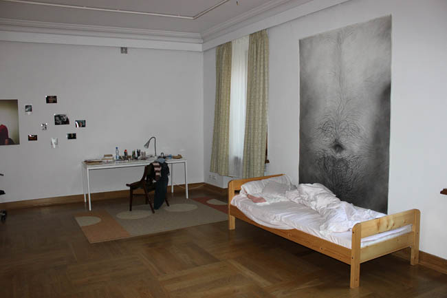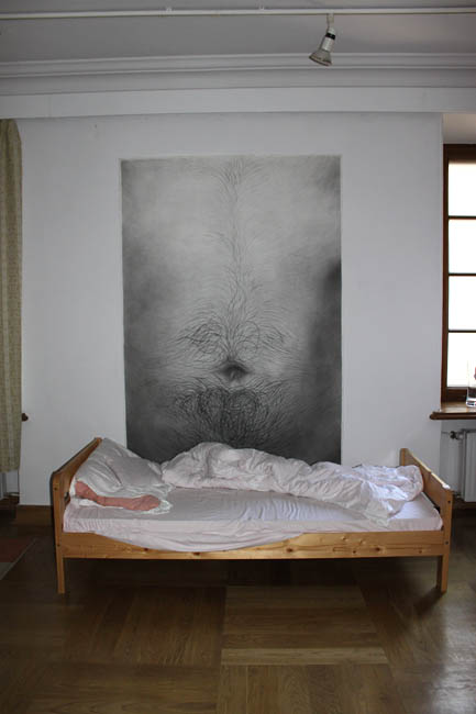 Mniejsza sala galerii z przestrzenią osobistą została zaaranżowana jak prywatny pokój artystki. Znajduje się tam łóżko z nie zasłaną pościelą, osobiste zdjęcia, biurko z rozrzuconymi przedmiotami, krzesło, a nawet firanki w oknie. Zabiegi te sprawiają, iż widz ma wrażenie jakby ktoś przed chwilą wyszedł z pokoju. Czerniawska przekracza w ten sposób granice pomiędzy artystą a odbiorcą, „wpuszcza” nas do swojego prywatnego życia. W tej sali eksponowane są także wydruki ukazujące zbliżenia ludzkiego ciała. Dla kontrastu druga z sal prezentuje przestrzeń wyniosłą, przywodzącą na myśl wnętrza muzealne eksponujące najważniejsze dzieła z kolekcji. Świadczy o tym zaprezentowanie tylko jednej pracy. Wymiary eksponowanego obiektu przypominają pejzaż. Jednakże temat dzieła i jego wykonanie jest zupełnie inne: zdjęcie owłosionej części ciała ludzkiego sprowadzone do ciężkiej do jednoznacznego określenia, wręcz abstrakcyjnej formy.