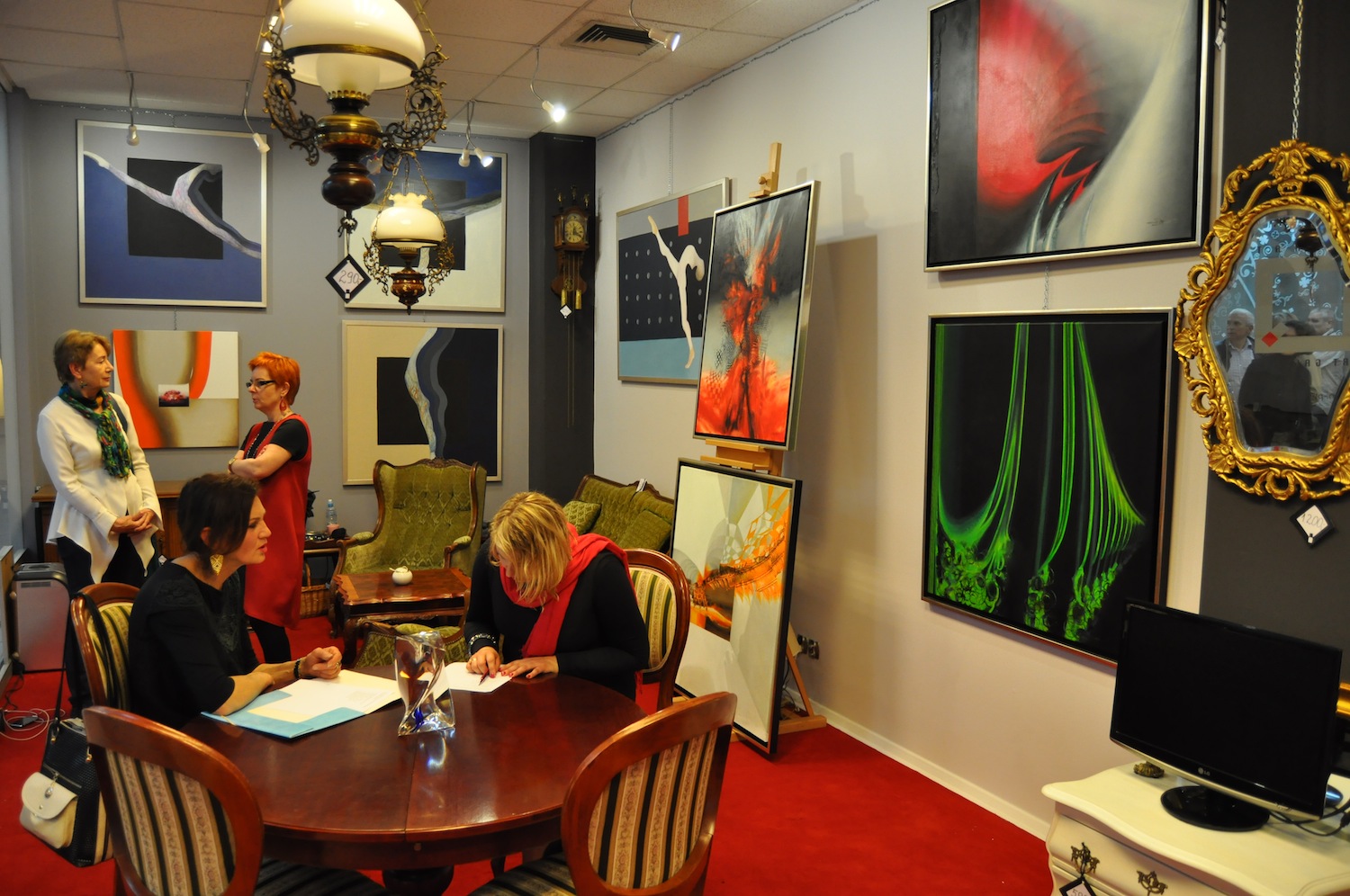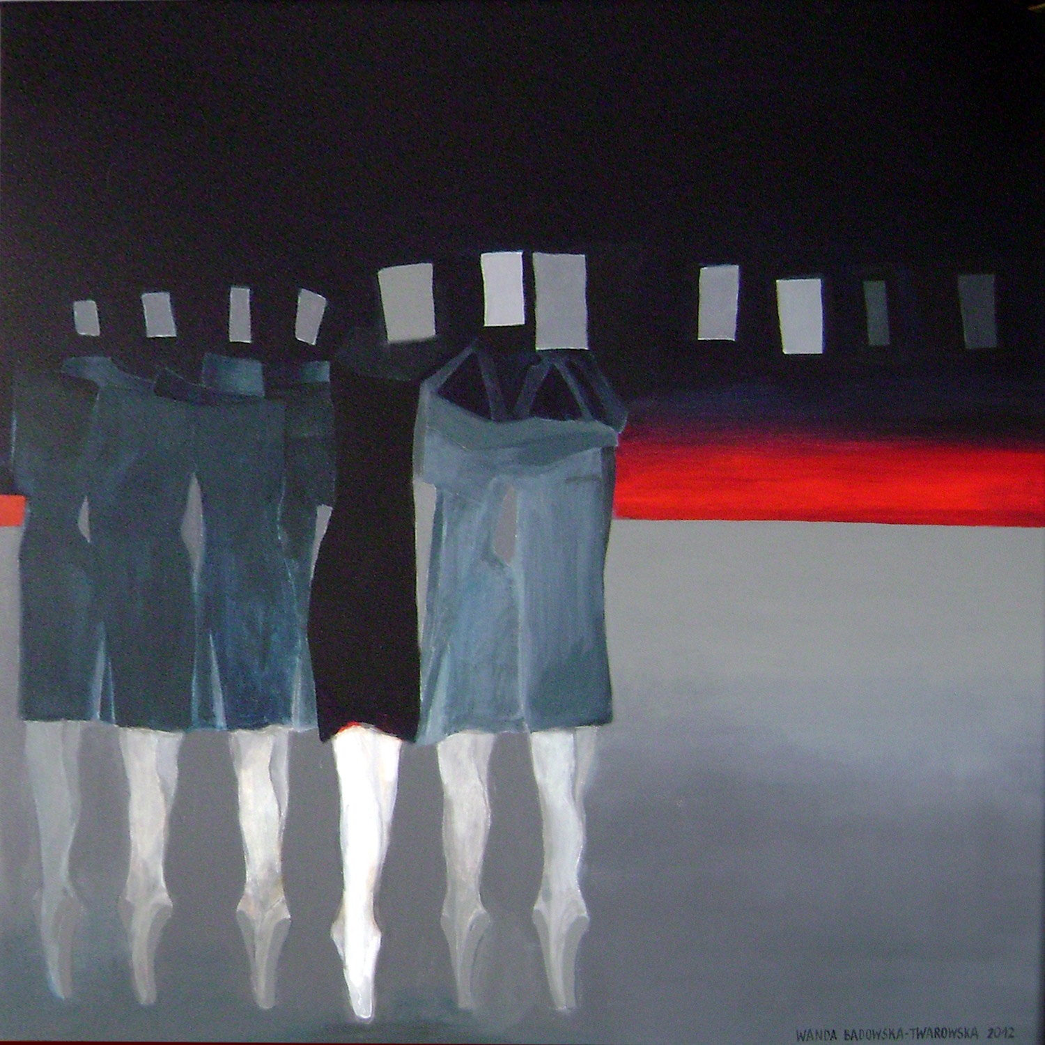 W poszczególnych obrazach Aliny Dorady-Krawczyk dostrzegamy podsumowanie kilku kierunków, które mogliśmy podziwiać w jej twórczości na przestrzeni dziesięciu ostatnich lat. Ale są tu też zapowiedzi nadchodzących nurtów tak sugestywne, iż widz z niecierpliwością oczekuje już następnej wystawy. W cyklach tanecznych Wandy Badowskiej-Twarowskiej przeżywamy stały rozwój kontemplacji tańca, jako najwyższej ze sztuk scenicznych. Obrazy jej są tak sugestywne, tak sensytywne, iż patrząc na taniec w nich uchwycony, zapominamy o muzyce i o dźwiękach, jakie podczas ruchu tancerza na scenie można usłyszeć. Może to będzie tajemniczy szmer stawianych stóp w pointach na deskach sceny, a może bicie serca…