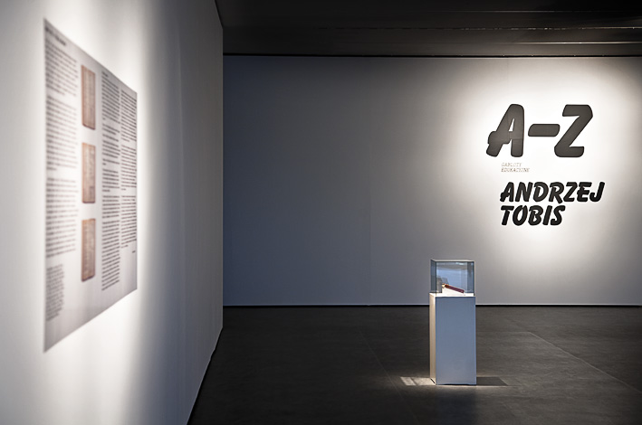 Każdej fotografii z cyklu A-Z (Gabloty edukacyjne) przyporządkowane zostaje słownikowe hasło w języku polskim oraz niemieckim, wraz numerem pochodzącym z indeksu. Słownik jest zresztą tylko pretekstem do kontynuowania poszukiwań kolejnych haseł i opisywania otaczającego artystę świata. Fotografie Andrzeja Tobisa powstają z niezwykłym namysłem i dużą dozą poczucia humoru, ujawniając pułapki zawarte w słowach i znaczeniach, w fotografowanych obrazach i przyporządkowanych im pojęciach. Owe rozliczne przesunięcia, niejasności i niedomówienia stanowią o największej wartości tego projektu. Tobis nie aranżuje sytuacji, utrwala jedynie zastaną rzeczywistość. Część fotografii to portrety przypadkowo spotkanych osób. W tych przypadkach, jak mówi artysta: jeśli ze strony portretowanego pada pytanie "jak mam stanąć", zawsze odpowiadam "jak pan/pani chce". Zadziwiająca bywa też melancholia zawarta w przedstawionych obrazach, które przywołują nostalgiczne wspomnienia minionego czasu - spacery po mieście, zakupy w osiedlowym sklepie czy dziecięce zabawy w parku.
