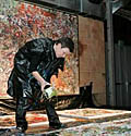 Pomijając zakąski i napitki, druga część wieczoru należała do działań plastycznych. W „sali denaturatu” na scenie rozciągnięto płótno i każdy mógł współtworzyć obraz, rzucając w niego pigmentami. Mimo odzieży ochronnej będącej do dyspozycji prym wiodły animujące „Eksplozję” artystki Joanna Stańko i